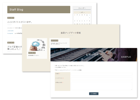 デザインの変更がいつでも簡単に行えます。搭載されているテンプレートは、企業サイトにも使用できるクオリティの高いものばかり!