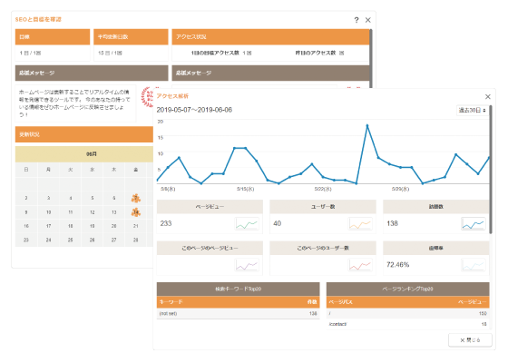 編集画面上に分かりやすいアドバイスが表示され、さらにその場で修正を行うことができるので、初心者でも安心!最新の解析データを基にチェック・最適化・コンテンツ強化を実現しました。